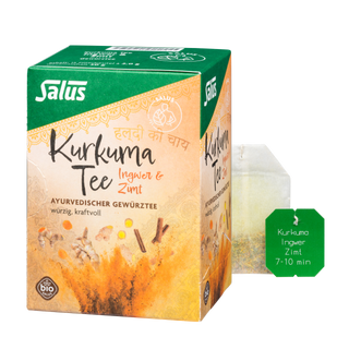 Der große Erfahrungsschatz von Salus seit 1916 in der Herstellung ausgewogener Rezepturen durch die wohltuende Kombination von Kräutern, Früchten und Gewürzen hat bei der Entwicklung der Kurkuma-Teesorten dazu beigetragen, ausgewogene und wohlschmeckende Tee´s mit Kurkuma - der „Wurzel des Lebens“ - zu kreieren. Das Ergebnis: Naturgenuss in bestgeprüfter Bio-Qualität, hergestellt am klimaneutralen Standort in Bruckmühl/Oberbayern.
